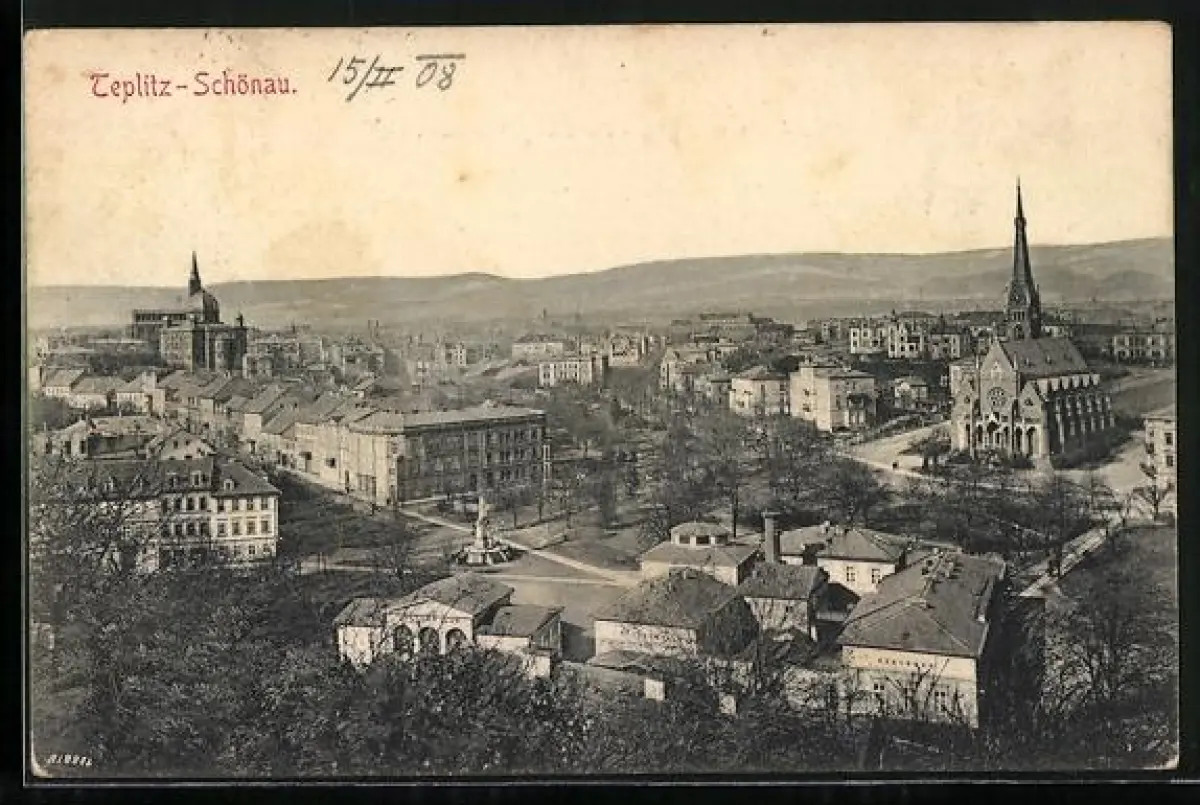 AK Teplitz-Schönau, Teilansicht mit Kirche