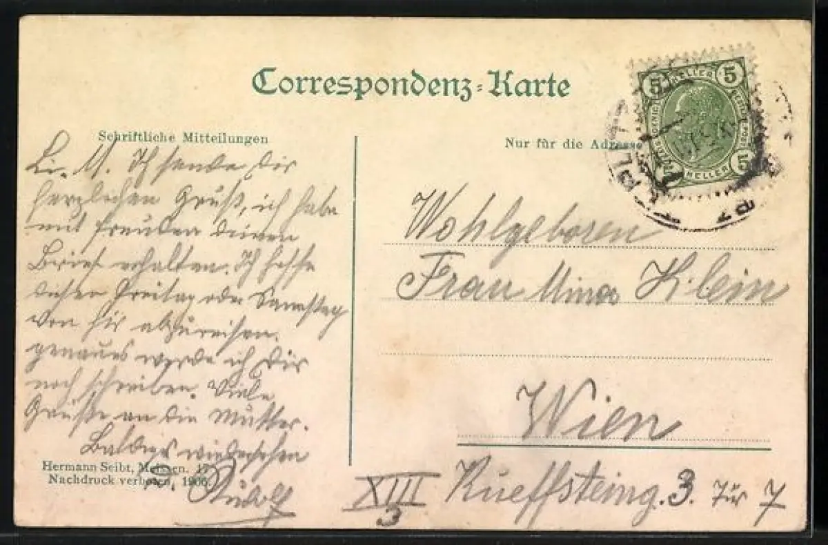 alte Ansichtskarte, gelaufen 1908, Eckknick li. oben, guter Zustand