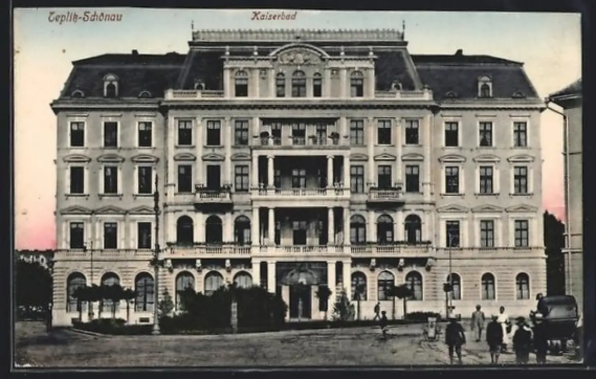 AK Teplitz Schönau / Teplice, Strassenpartie vorm Kaiserbad