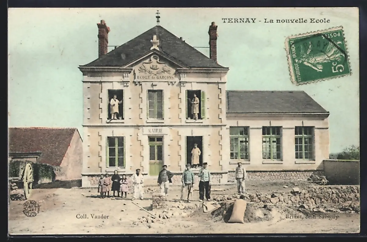 AK Ternay, La nouvelle École avec élèves devant le bâtiment
