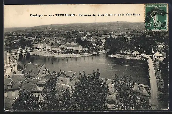 AK Terrasson, Panorama des deux Ponts et de la Ville Basse