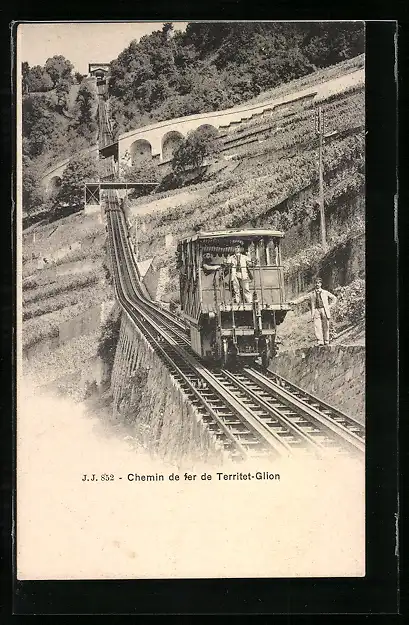AK Territet-Glion, Chemin de fer de Territet-Glion, Bergbahn auf dem Weg ins Tal