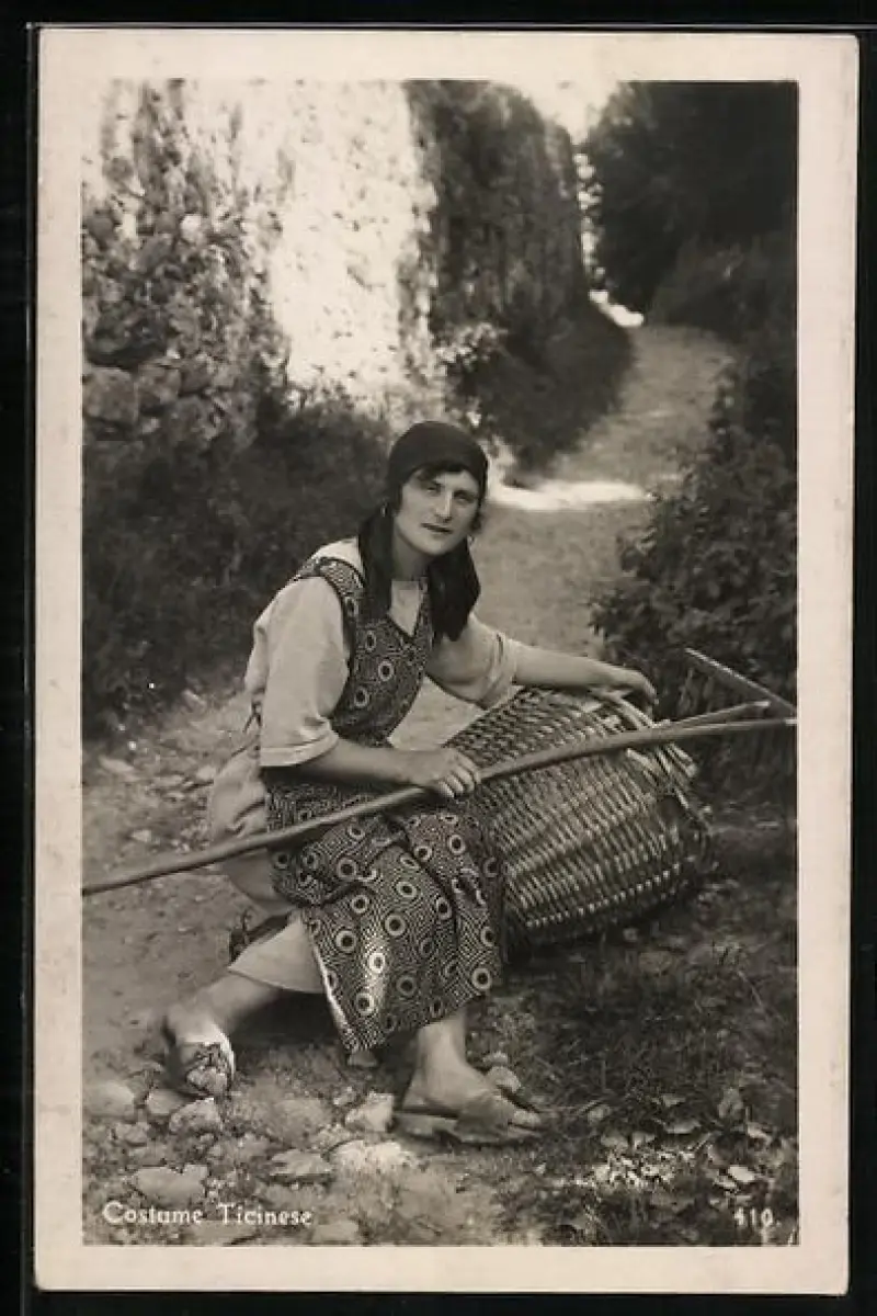 AK Tessin, Costume Ticinese, Schweizerin mit Korb