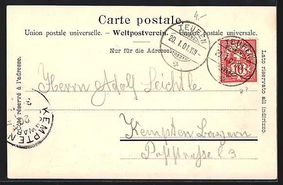 alte Ansichtskarte, gelaufen 1901, guter Zustand