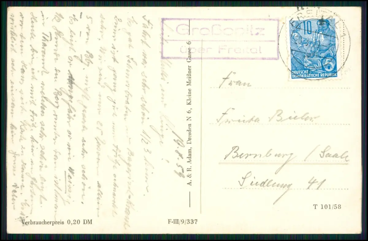 AK Tharandt i. Sa. Wilsdruffer Str. – mit Landpoststempel Großopitz über Freital
