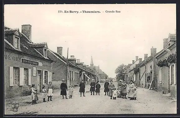 AK Thaumiers, Grande Rue avec enfants dans la rue principale