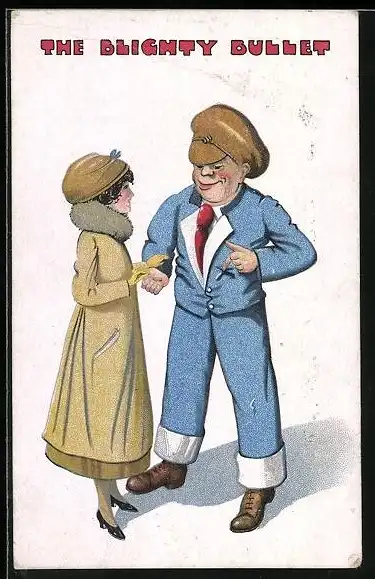 AK The blighty Bullet, Frau im Mantel mit einem Mann, Scherz