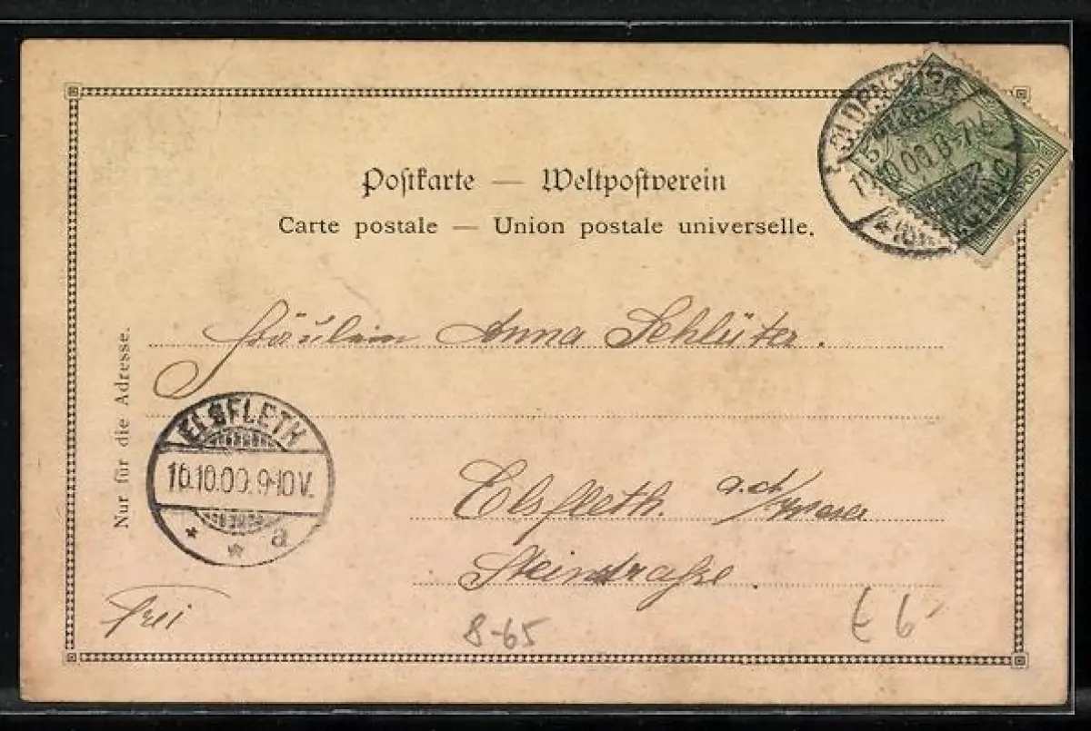 alte Ansichtskarte, gelaufen 1900, Eckknick li. unten, guter Zustand