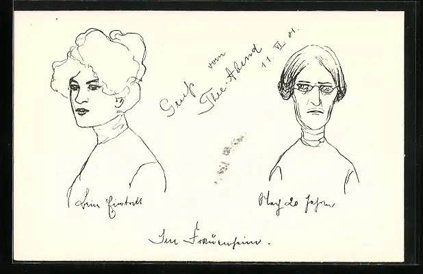 AK Thee-Abend 11.VI.01, Im Frauenheim, Scherz, bezaubernde und wenig bezaubernde Dame