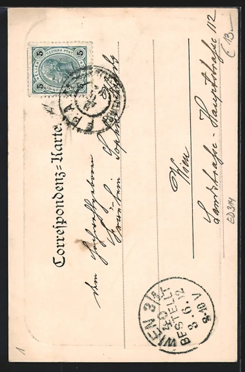 alte Ansichtskarte, gelaufen 1902, Stempelspur, guter Zustand