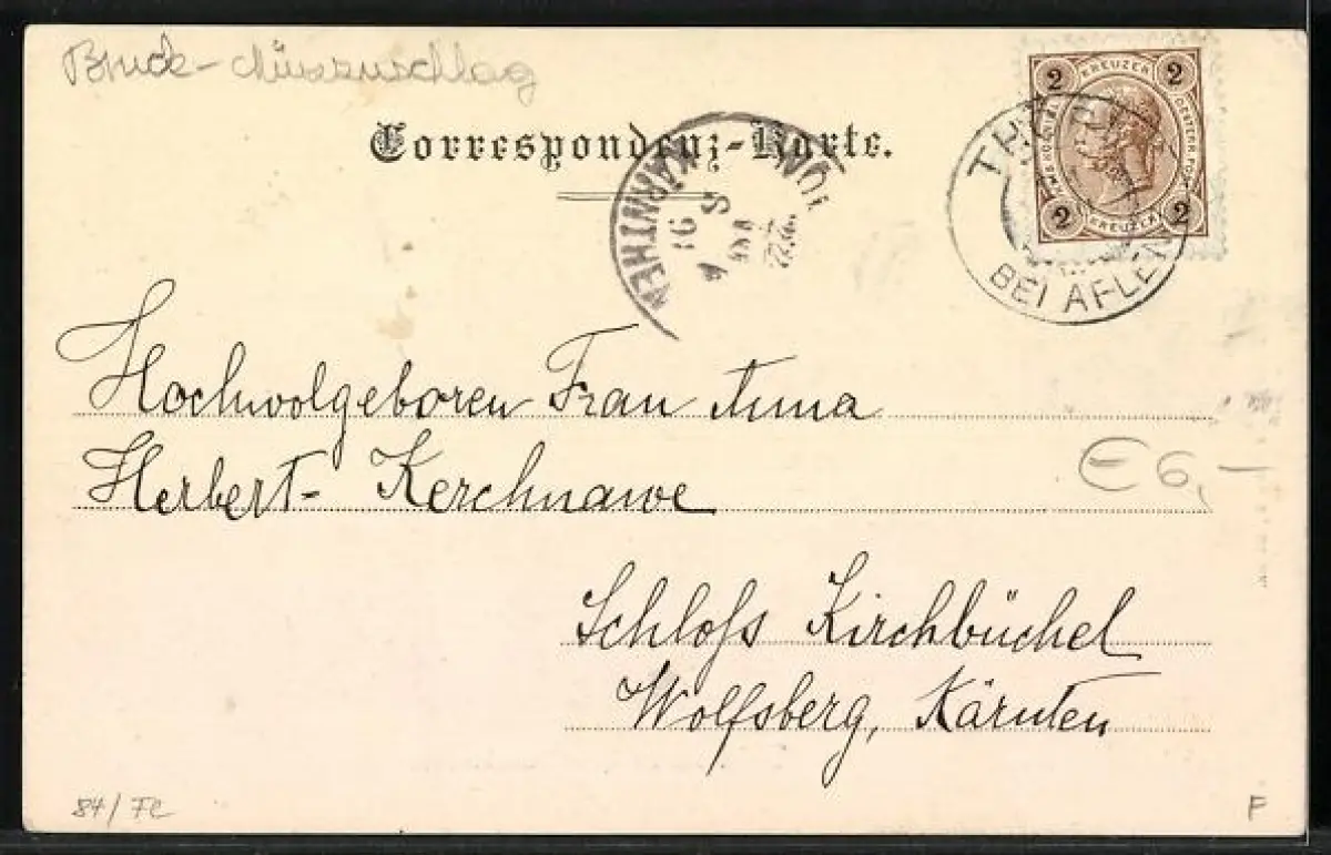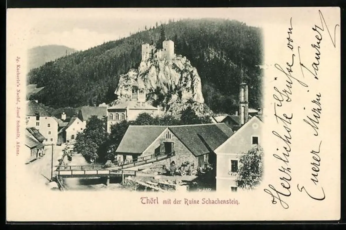AK Thörl bei Aflenz, Ortspartie mit der Ruine Schachenstein