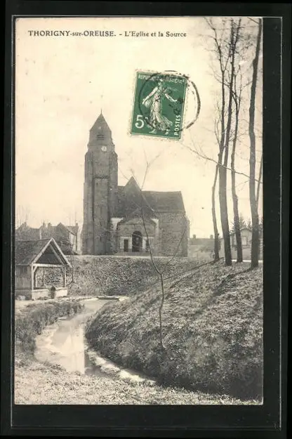 AK Thorigny-sur-Oreuse, L`Eglise et la Source
