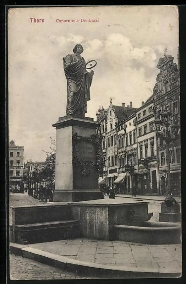 AK Thorn, Copernicus-Denkmal mit Strassenansicht