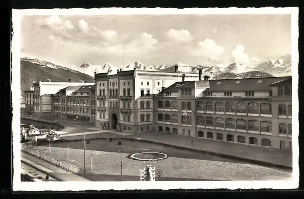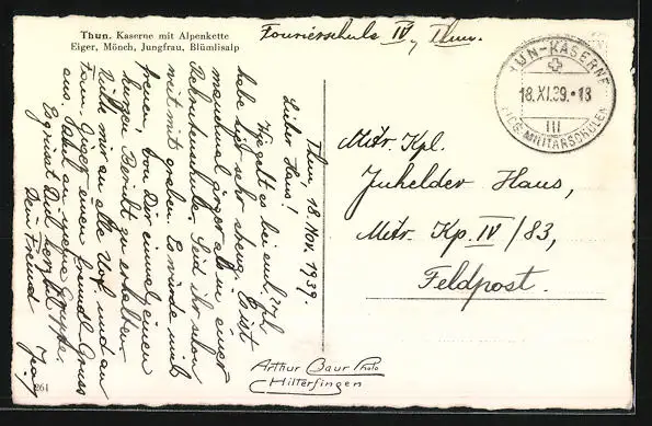 AK Thun, Kaserne mit Alpenkette: Eiger, Mönch und Jungfrau