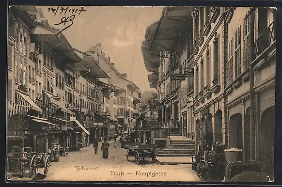AK Thun, Partie in der Hauptgasse, mit Geschäften