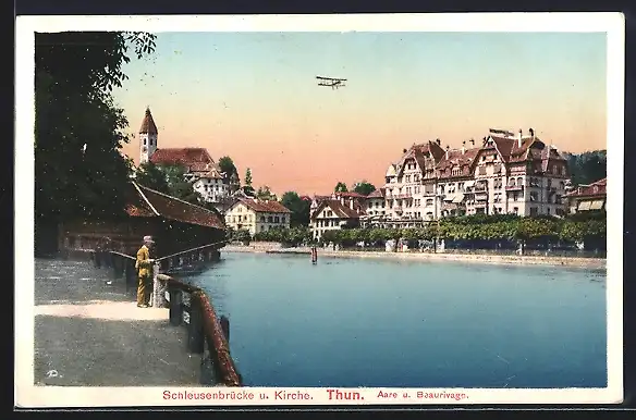 AK Thun, Schleusenbrücke u. Kirche, Aare u. Beaurivage