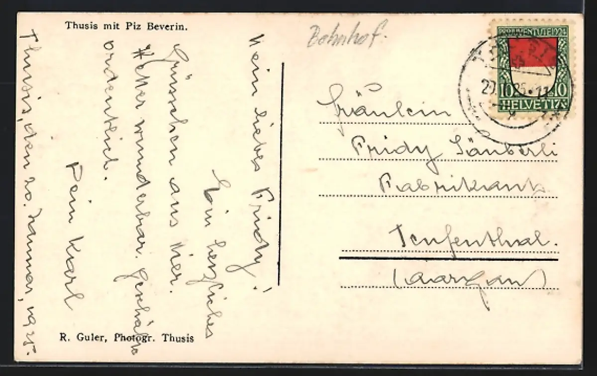 AK Thusis, Teilansicht mit Piz Beverin