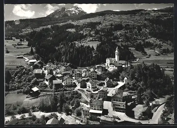 AK Tiefencastel /Julier-Route, Totalansicht gegen Mon u. Piz Toissa aus der Vogelschau
