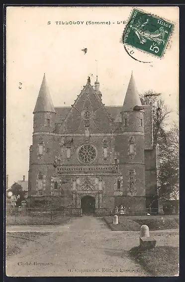 AK Tilloloy, L`église imposante avec ses tours et rosace