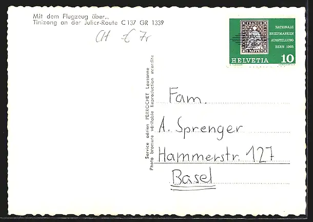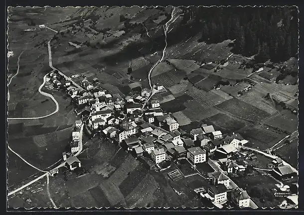 AK Tinizong an der Julier-Route, Teilansicht mit Strassenpartie, Fliegeraufnahme
