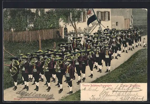 AK Tiroler Schützen-Kompanie mit Musikkapelle in Tracht