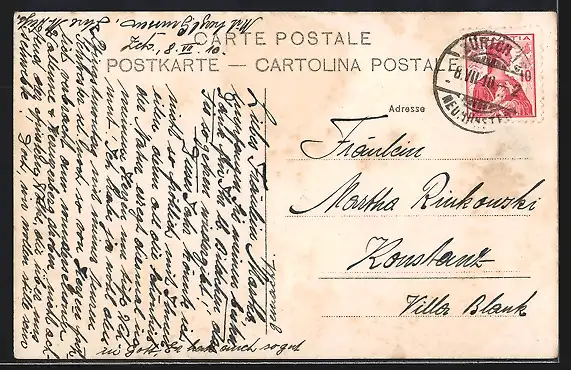 alte Ansichtskarte, gelaufen 1910, guter Zustand
