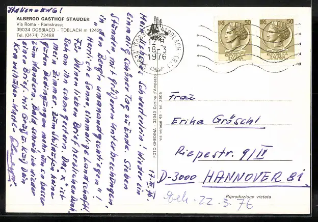 alte Ansichtskarte, gelaufen 1976, guter Zustand