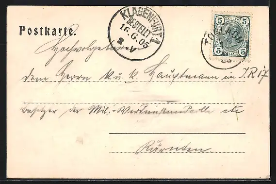 alte Ansichtskarte, gelaufen 1905, Stempelspur, guter Zustand