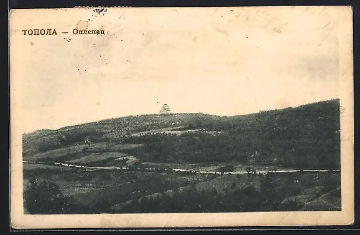 AK Topola, Ortsansicht mit Landstrasse aus der Vogelschau