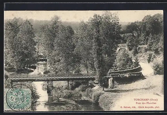 AK Torchamp, Pont des Planches sur la rivière entourée d`arbres