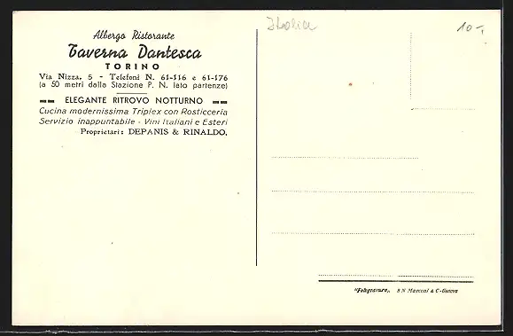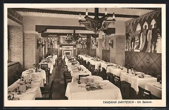 AK Torino, Albergo Ristorante Taverna Dantesca, Un Salone, Via Nizza 5, Propr. Depanis & Rinaldo