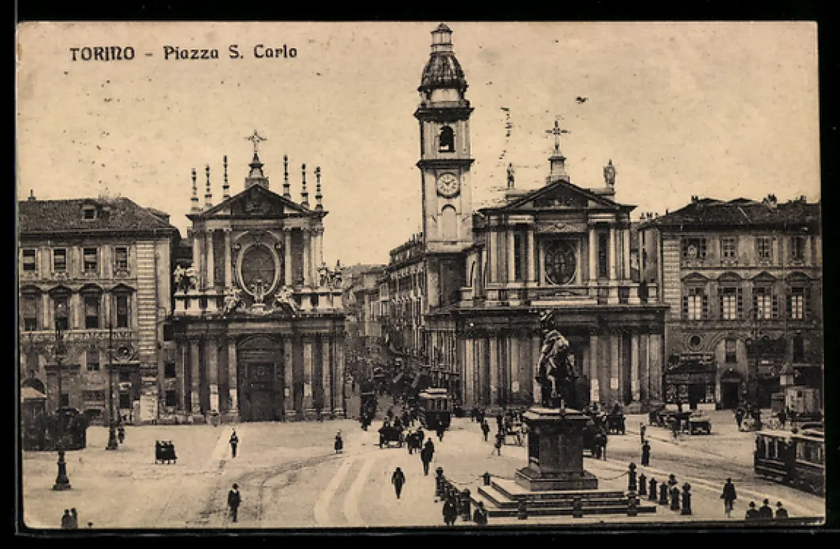 AK Torino, Piazza S. Carlo, Strassenbahn