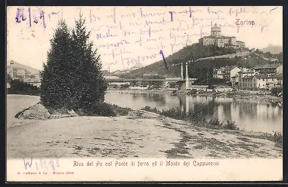AK Torino, Riva del Po col Ponte di ferro ed il Monte dei Cappuccini