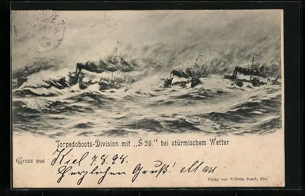 AK Torpedoboots-Division mit S 26 bei stürmischen Wetter