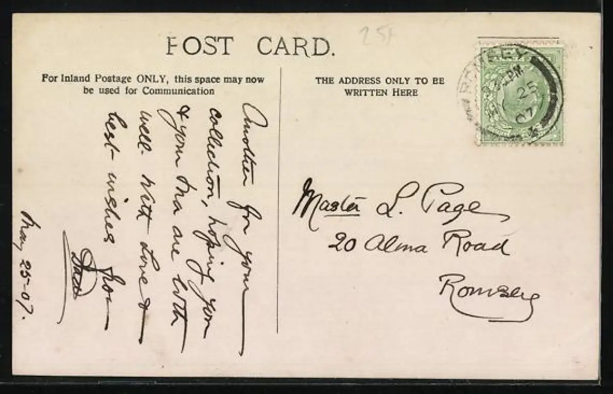 gelaufen 1907, kleiner Oberflächenschaden unten mitte, guter Zustand