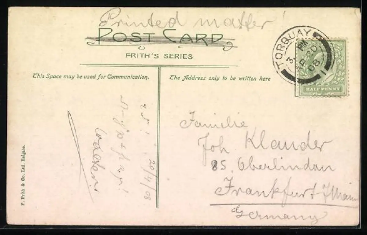 alte Ansichtskarte, gelaufen 1908, guter Zustand