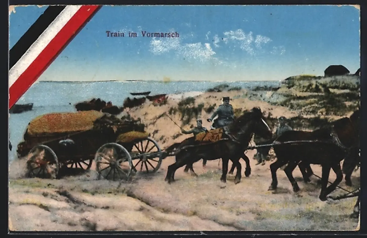 AK Train im Vormarsch, Banderole in deutschen Nationalfarben
