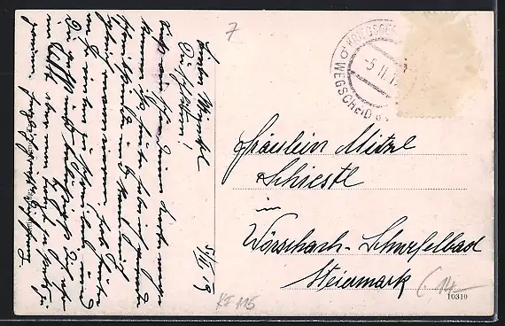 alte Ansichtskarte, gelaufen 1919, Briefmarke entfernt, guter Zustand