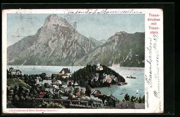 AK Traunkirchen, Ortsansicht mit Traunstein