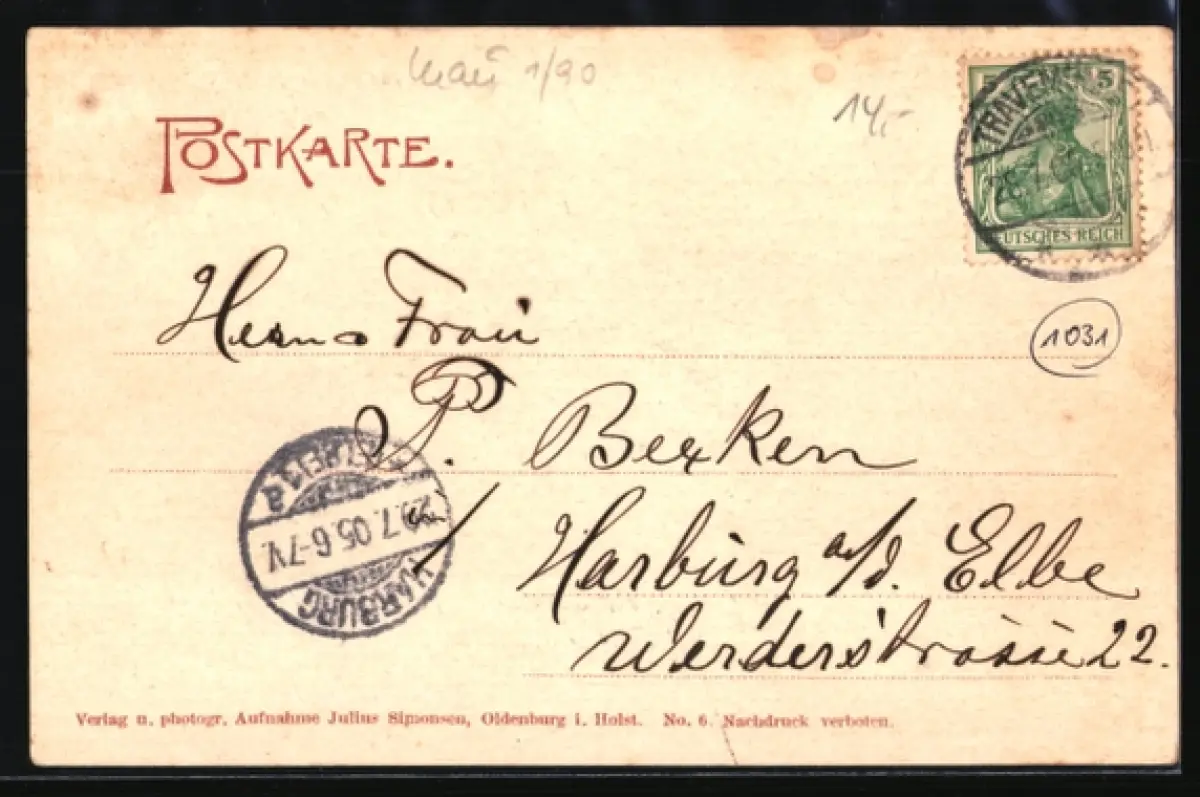 alte Ansichtskarte, gelaufen 1905, guter Zustand