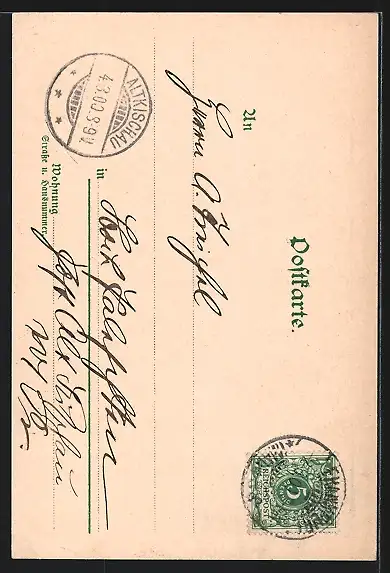 alte Ansichtskarte, gelaufen 1900, Eckknicke re., guter Zustand