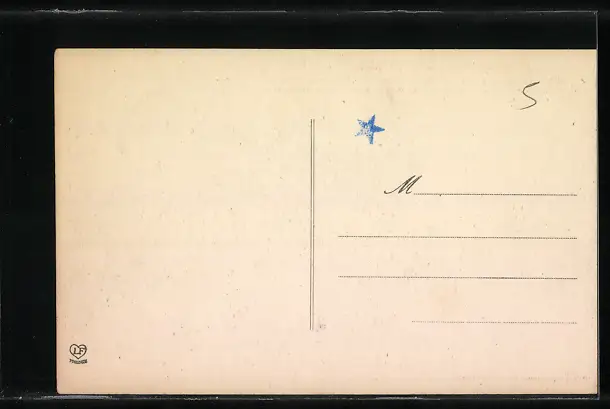 Personenbezogene Daten auf der Rückseite der Karte wurden durch blauen Textmarker unkenntlich gemacht. Die blauen Stellen sind auf die Vorderseite durchgeweicht und wirken sich negativ auf das Postkartenfoto aus