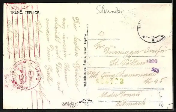 AK Trenc. Teplice, Ortspartie mit Hotel-Restaurant