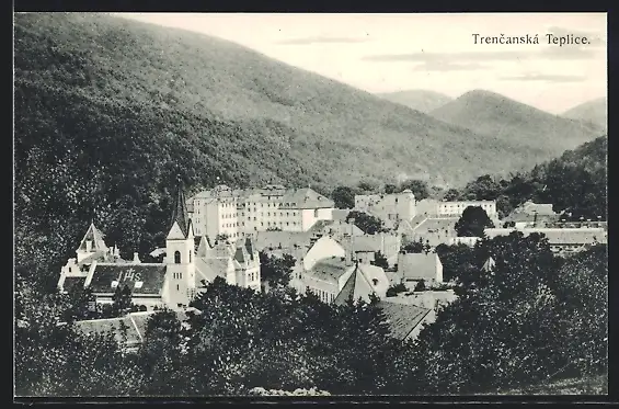 AK Trencanská Teplice, Ortsansicht bei Tag