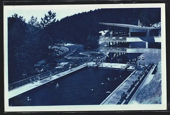 Personenbezogene Daten auf der Rückseite der Karte wurden durch blauen Textmarker unkenntlich gemacht. Die blauen Stellen sind auf die Vorderseite durchgeweicht und wirken sich negativ auf das Postkartenfoto aus