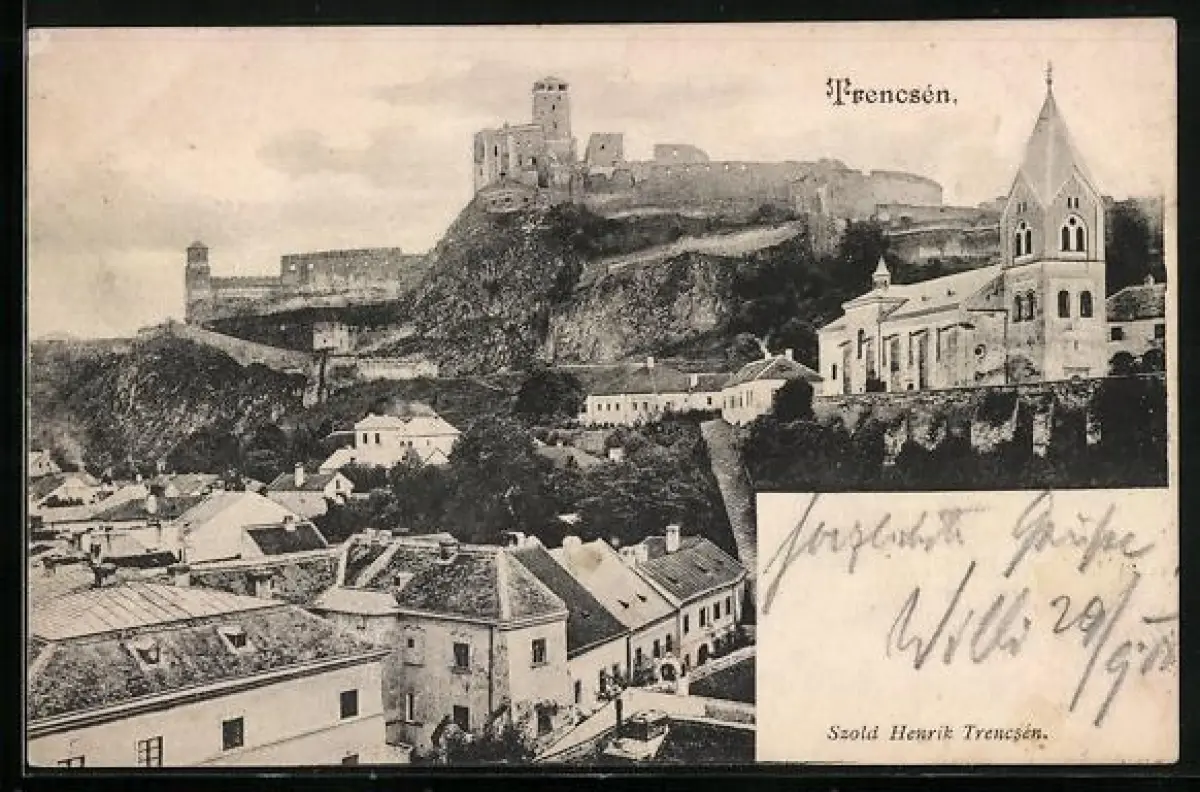 AK Trencsén, Ortsansicht mit Burg