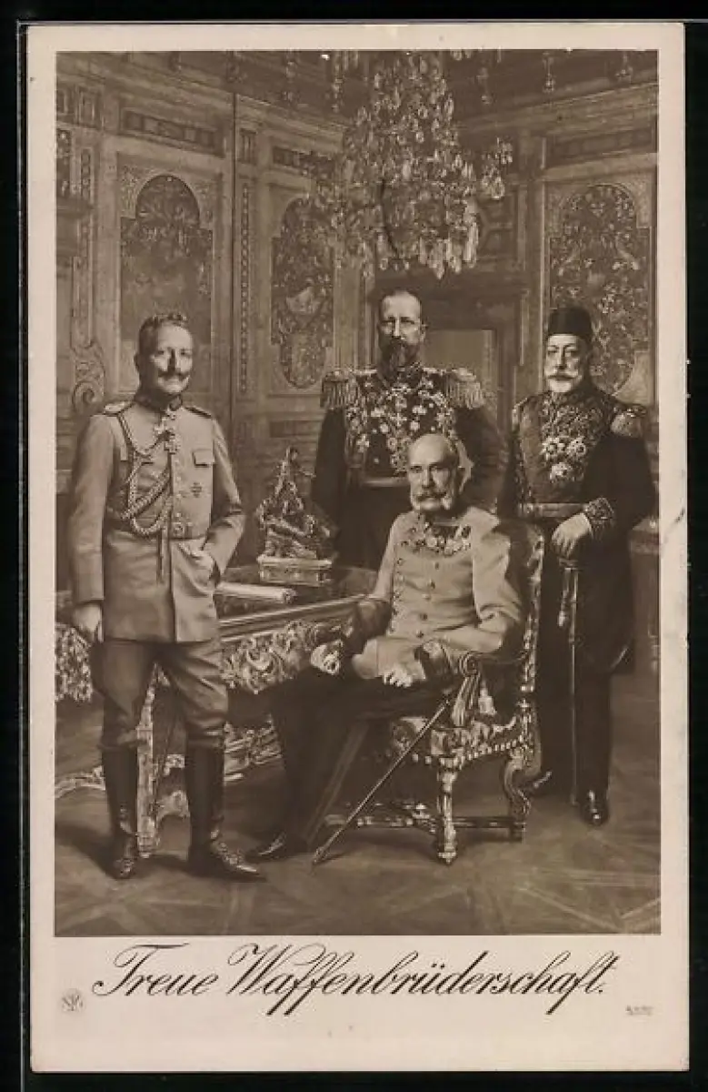AK Treue Waffenbrüderschaft, Kaiser Franz Josef I. von Österreich, Sultan Mohammed V., Kaiser Wilhelm II.