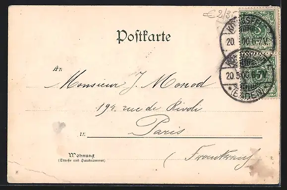 alte Ansichtskarte, gelaufen 1900, Eckknick links oben, guter Zustand
