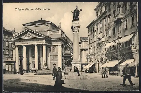AK Triest, Borznitrg, Ortspartie mit Denkmal