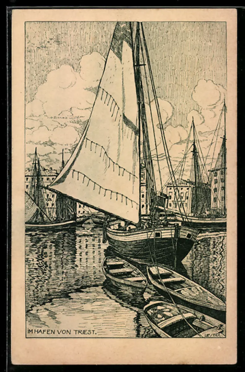 AK Triest, Partie im Hafen